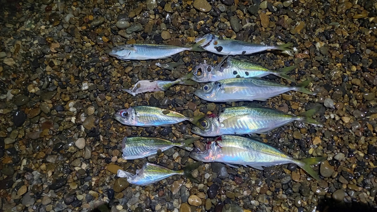 活き新アジ 一匹 大中/100円 小/70円 販売中 70円 ヤエン 浮き 青物 釣掘り用。