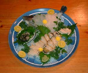 ハゲ・あわびの活き造り盛り合わせです。